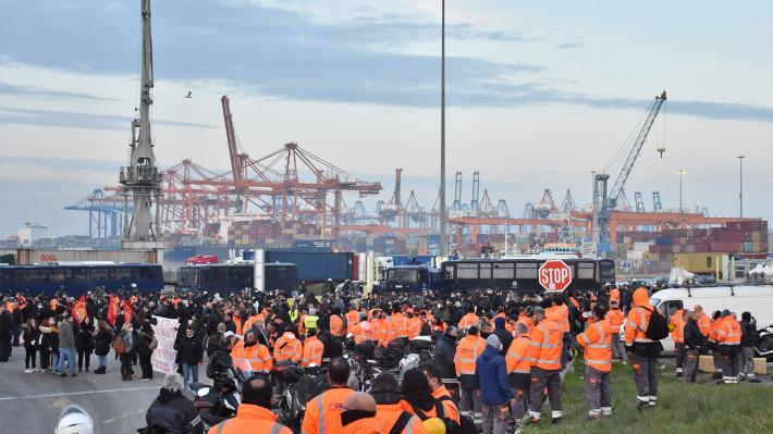 Oι εργαζόμενοι στις προβλήτες ΙΙ και ΙΙΙ της Cosco στο λιμάνι του